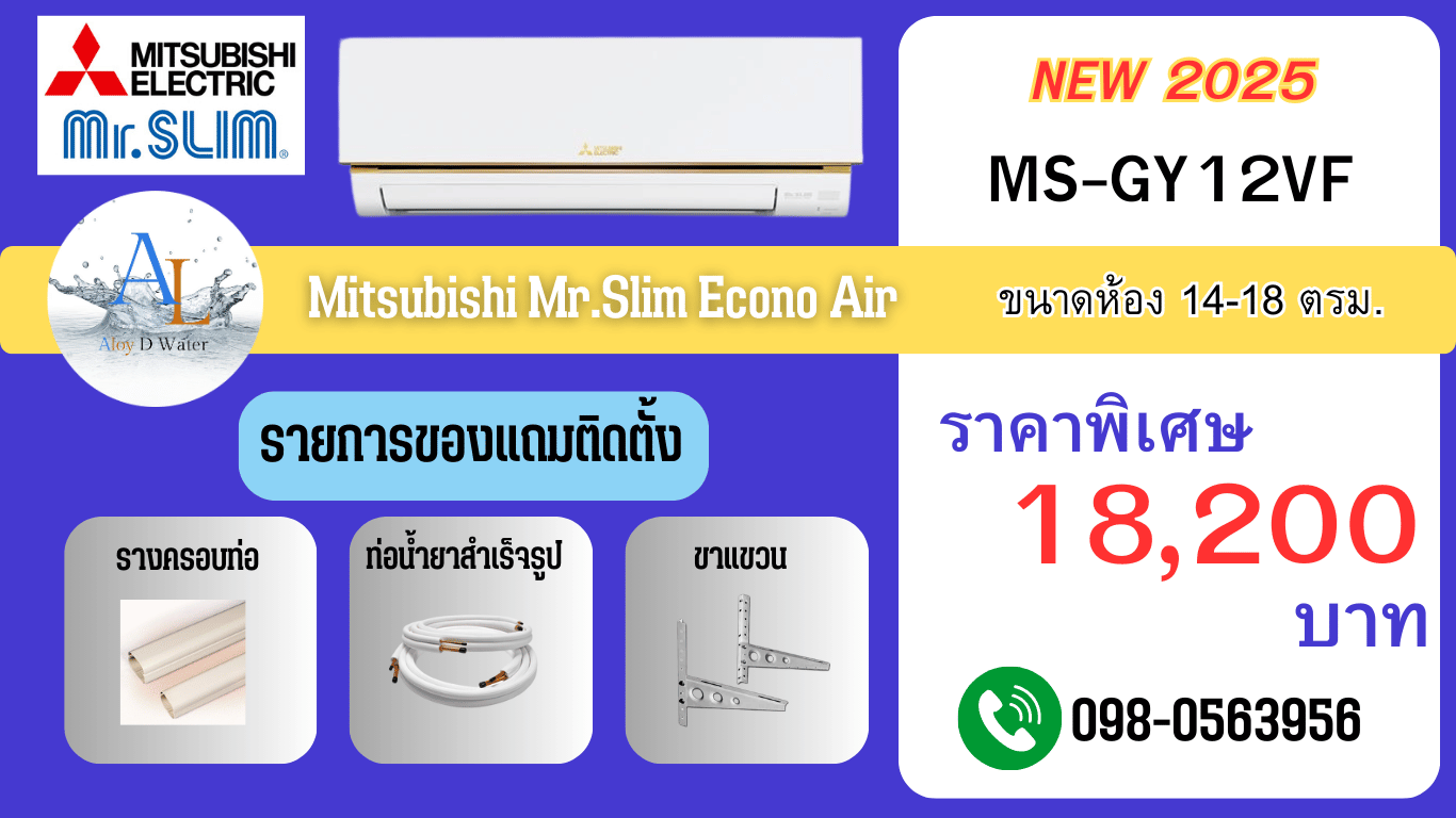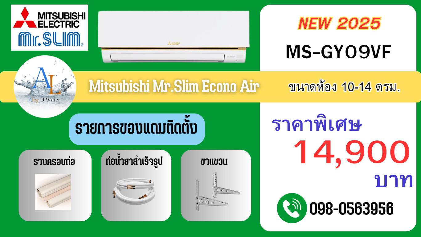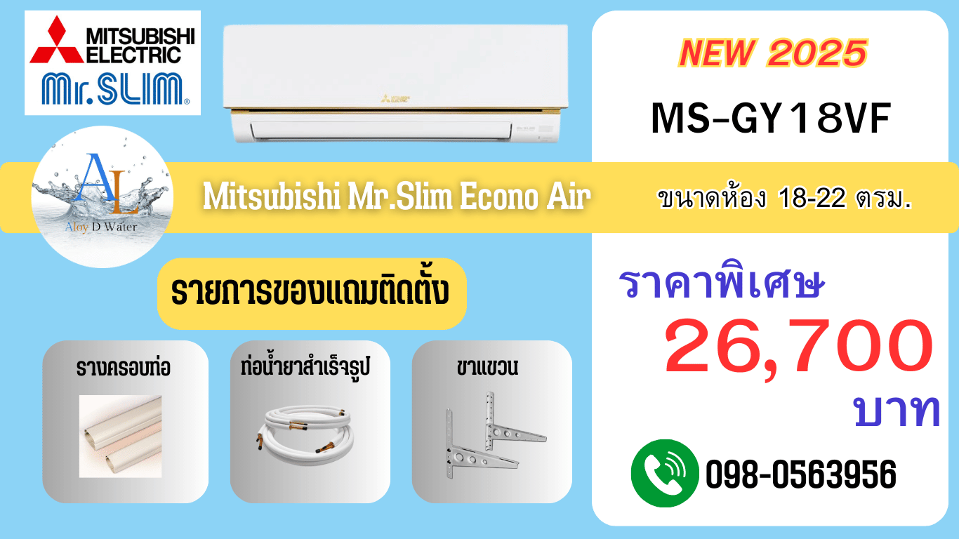 **แอร์ Mitsubishi ECONO Series ปี 2025 รุ่น MS-GY09VF, MS-GY12VF, MS-GY18VF ราคาสุดคุ้ม ประหยัดไฟ ติดตั้งพร้อมใช้งาน**