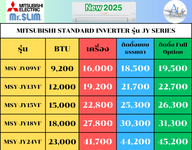 Mitsubishi Mr.Slim รุ่น JY Series ปี 2025 เป็นตัวเลือกอันดับต้น ๆ สำหรับลูกค้าที่ต้องการแอร์บ้านราคาถูกแต่ยังคงคุณภาพการใช้งานระดับพรีเมียมจากแบรนด์ Mitsubishi แท้ ๆ โดยเฉพาะสำหรับบ้านพัก คอนโด หรือออฟฟิศที่เน้นความคุ้มค่าในราคาจับต้องได้