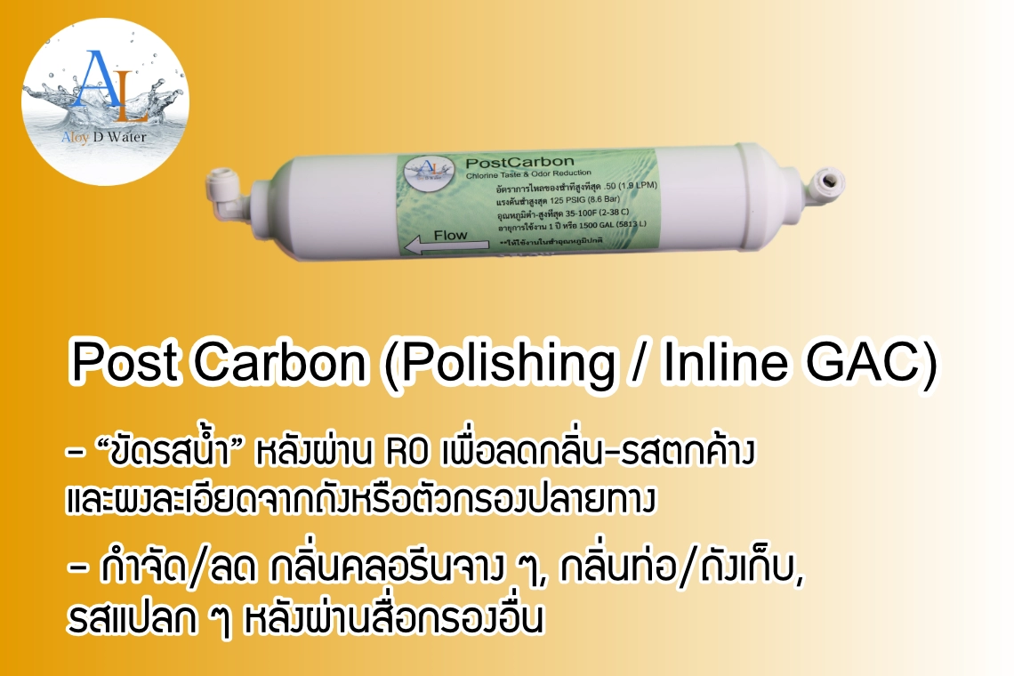 ดูดซับกลิ่น สี คลอรีน และสารอินทรีย์ระเหยง่าย ช่วยให้น้ำใสขึ้น รสชาติและกลิ่นดีขึ้นอย่างชัดเจน