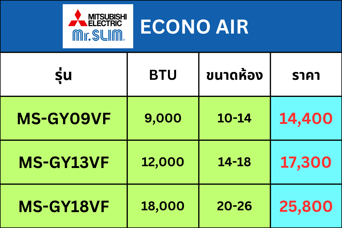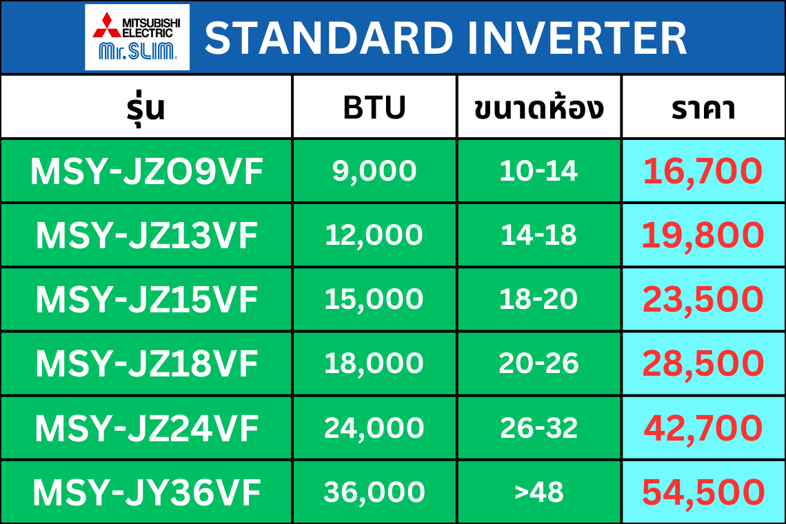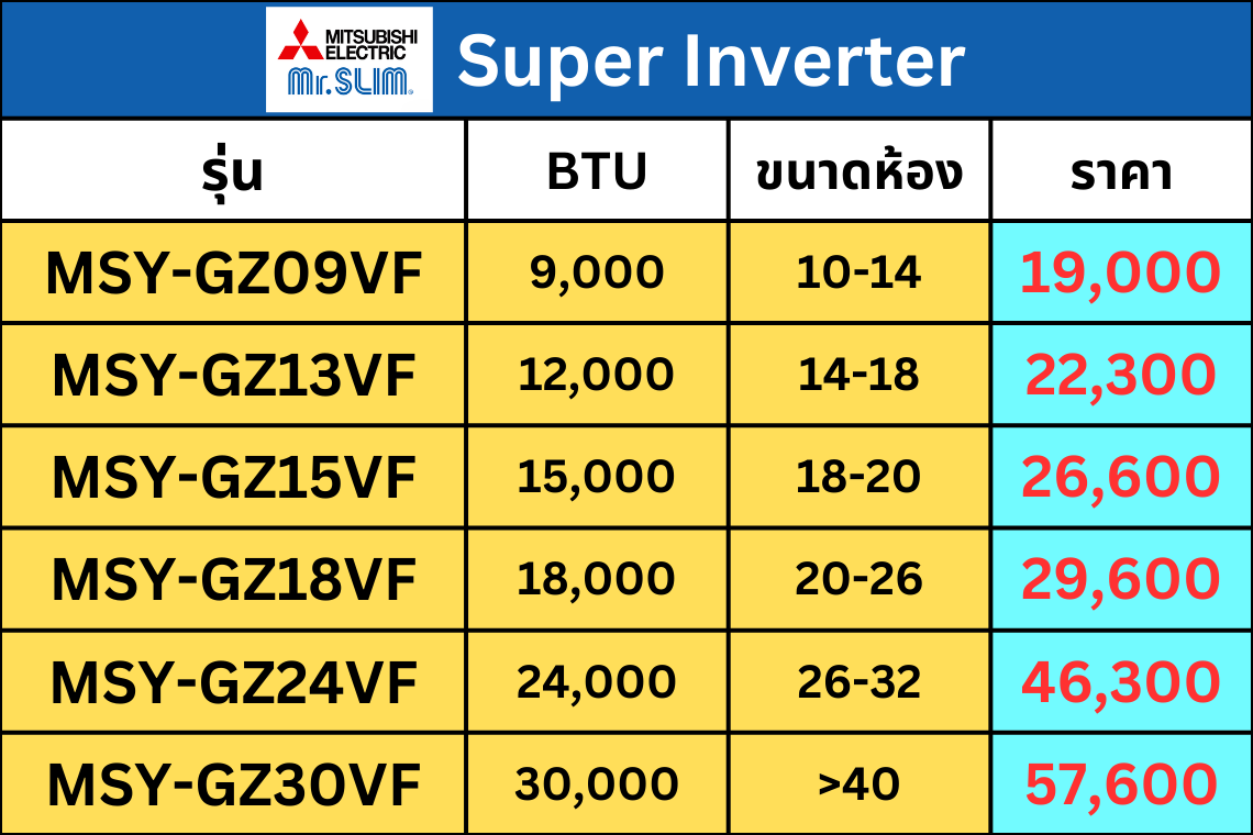 แอร์ Mitsubishi Mr.Slim ปี 2026 ทุกรุ่น | รวมครบทุกซีรีย์ พร้อมราคาและติดตั้งโดย AloyDWater