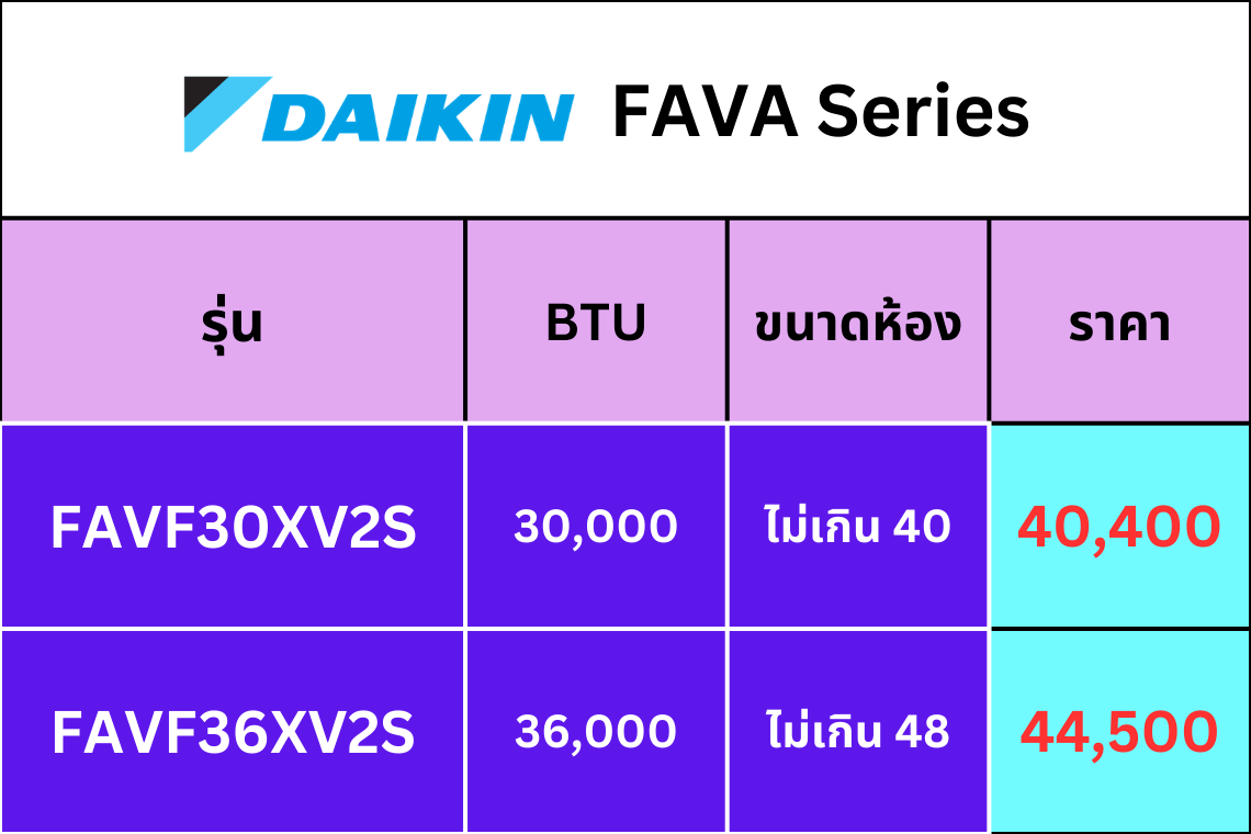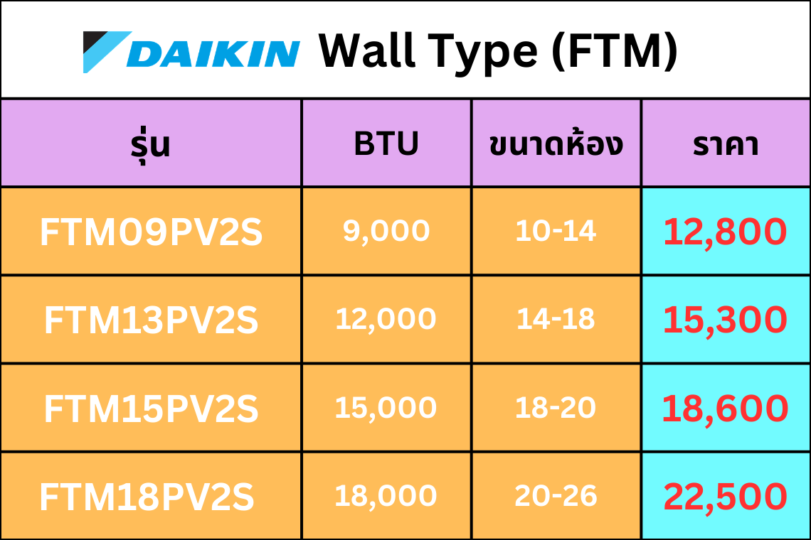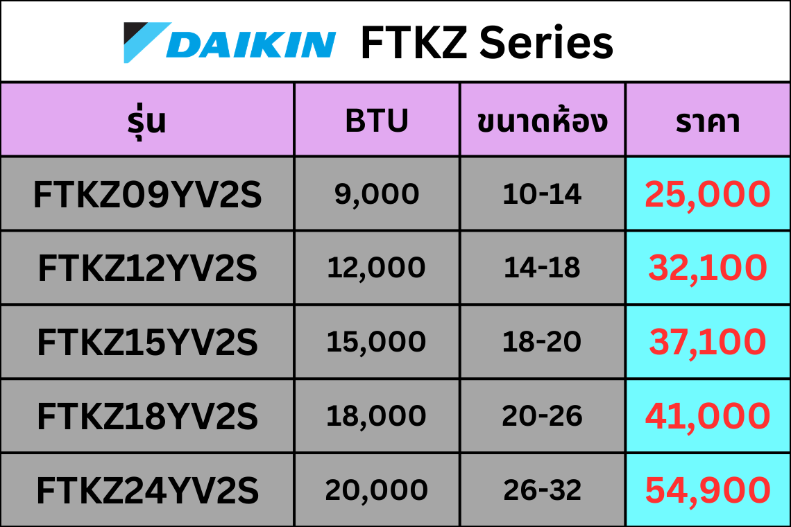 รวมทุกซีรีส์ Daikin (มีช่องเว้นสำหรับ รูปตารางราคา ของคุณ)
